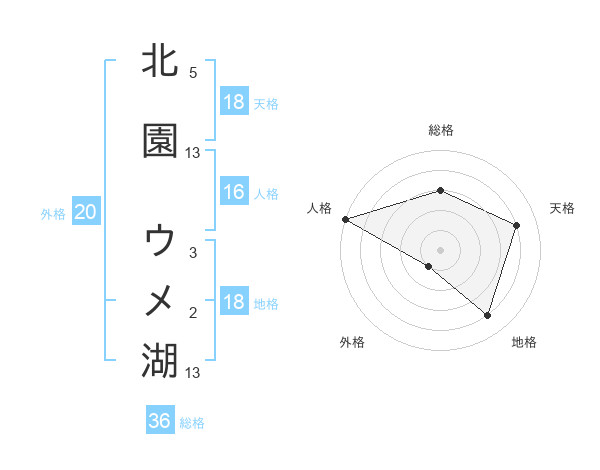 北園 ウメ湖さんの天格は18画の4点!