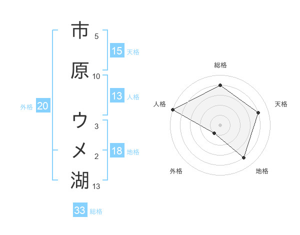 市原 ウメ湖さんの総格は33画の4点!