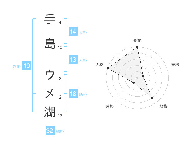 手島 ウメ湖さんの総格は32画の5点!