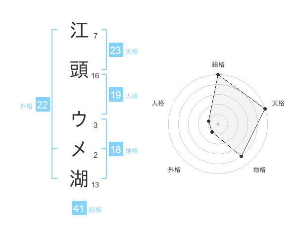 江頭 ウメ湖さんを姓名の画数から五運を鑑定