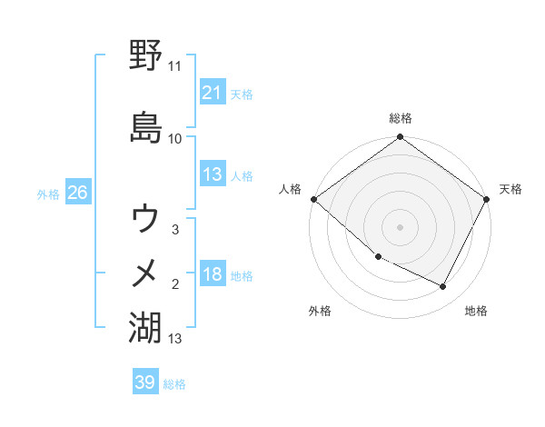 野島 ウメ湖さんを姓名の画数から五運を鑑定