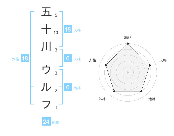 五十川 ウルフさんを姓名の画数から五運を鑑定