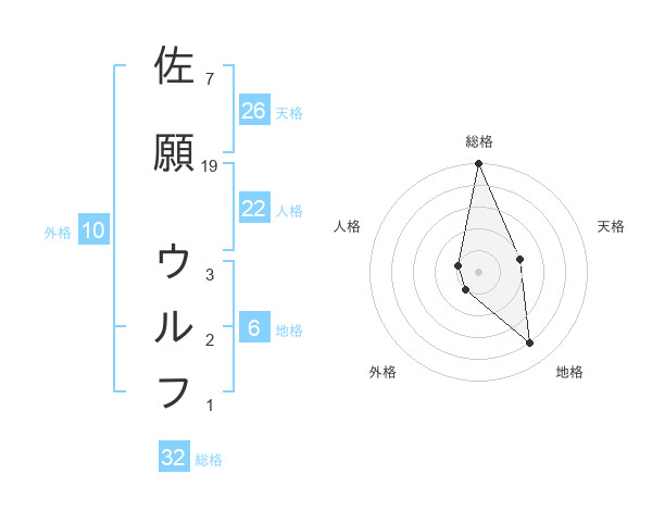 佐願 ウルフさんを姓名の画数から五運を鑑定