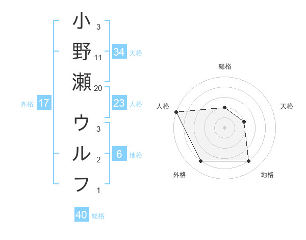 小野瀬 ウルフさんを姓名の画数から五運を鑑定