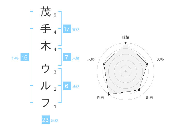 茂手木 ウルフさんを姓名の画数から五運を鑑定