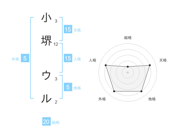 小堺 ウルさんの天格は15画の4点!