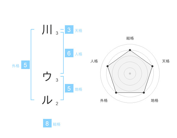 川 ウルさんの総格は8画の4点!