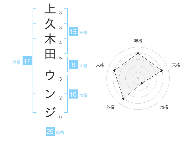 上久木田 ウンジさんを姓名の画数から五運を鑑定