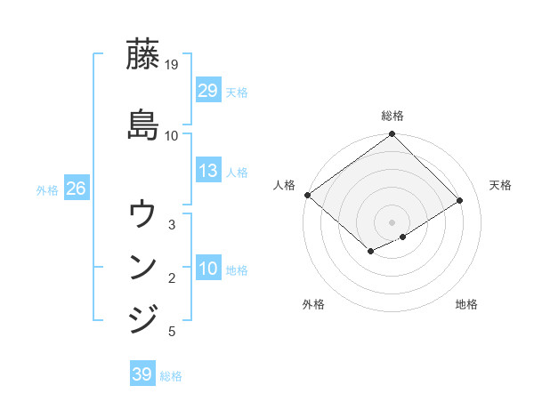藤島 ウンジさんを姓名の画数から五運を鑑定
