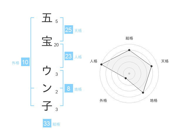 五宝 ウン子さんの天格は25画の4点!