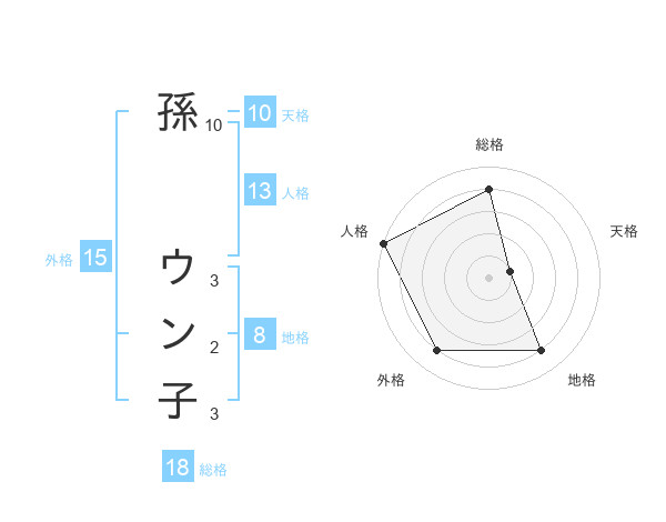 孫 ウン子さんを姓名の画数から五運を鑑定
