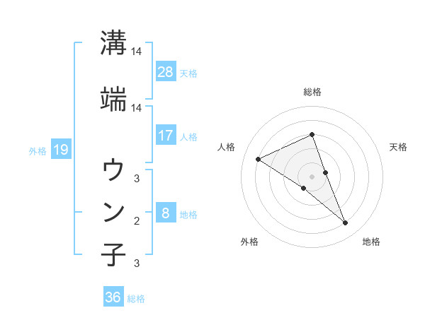 溝端 ウン子さんの天格は28画の1点!