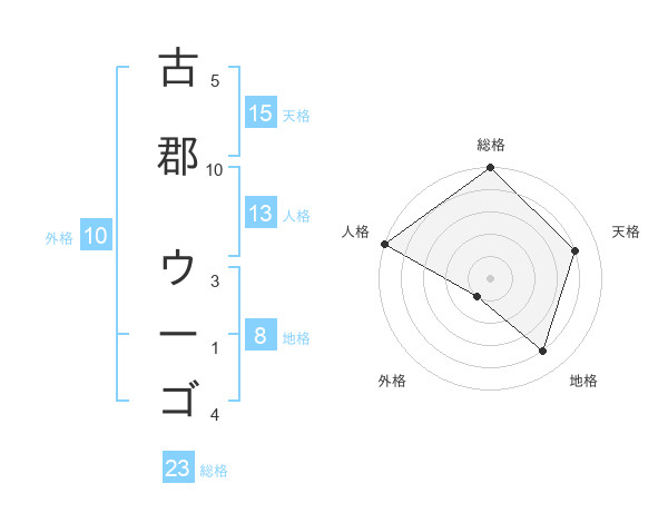 古郡 ウーゴさんの総格は23画の5点!