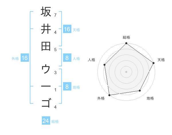 坂井田 ウーゴさんを姓名の画数から五運を鑑定