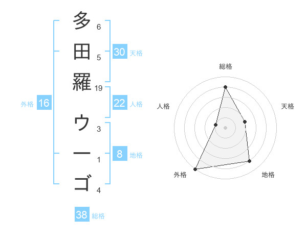 多田羅 ウーゴさんを姓名の画数から五運を鑑定