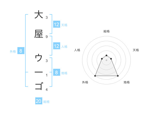 大屋 ウーゴさんを姓名の画数から五運を鑑定