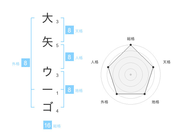 大矢 ウーゴさんを姓名の画数から五運を鑑定