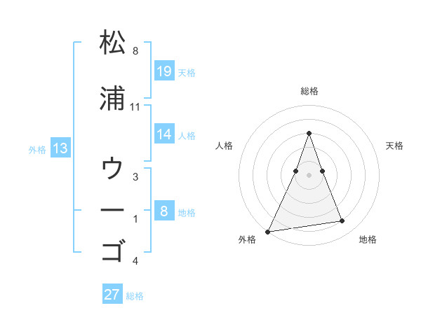 松浦 ウーゴさんの外格は13画の5点!