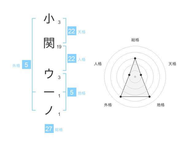 小関 ウーノさんを姓名の画数から五運を鑑定