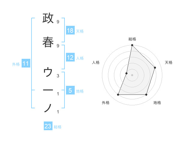 政春 ウーノさんを姓名の画数から五運を鑑定