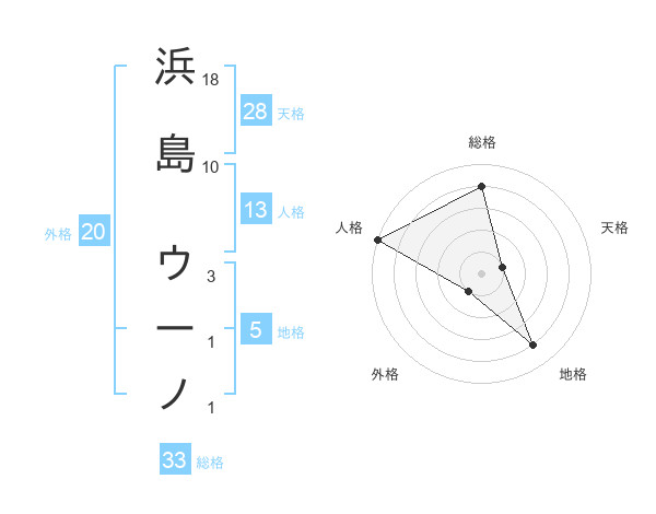 浜島 ウーノさんを姓名の画数から五運を鑑定