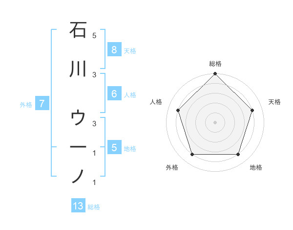 石川 ウーノさんの総格は13画の5点!