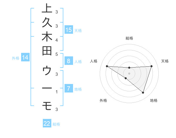 上久木田 ウーモさんを姓名の画数から五運を鑑定