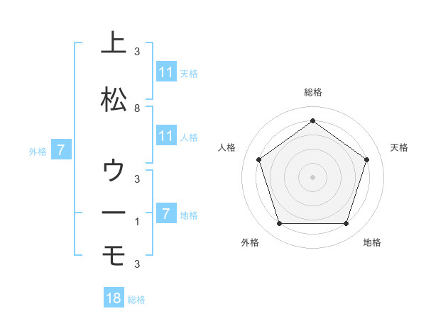 上松 ウーモさんを姓名の画数から五運を鑑定