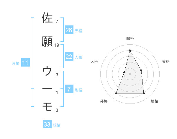 佐願 ウーモさんを姓名の画数から五運を鑑定
