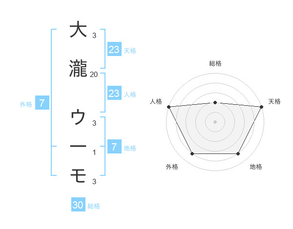 大瀧 ウーモさんを姓名の画数から五運を鑑定