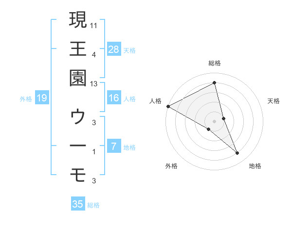 現王園 ウーモさんを姓名の画数から五運を鑑定