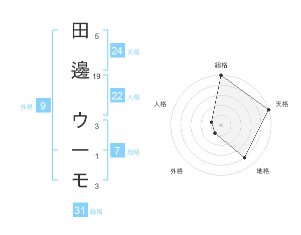 田邊 ウーモさんの総格は31画の5点!