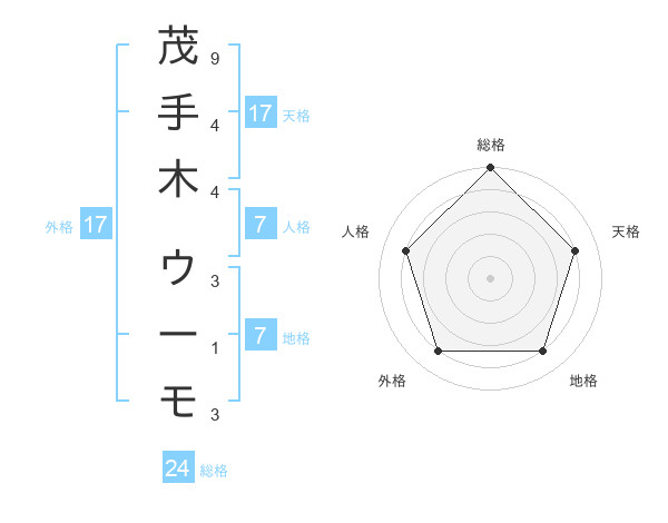 茂手木 ウーモさんを姓名の画数から五運を鑑定