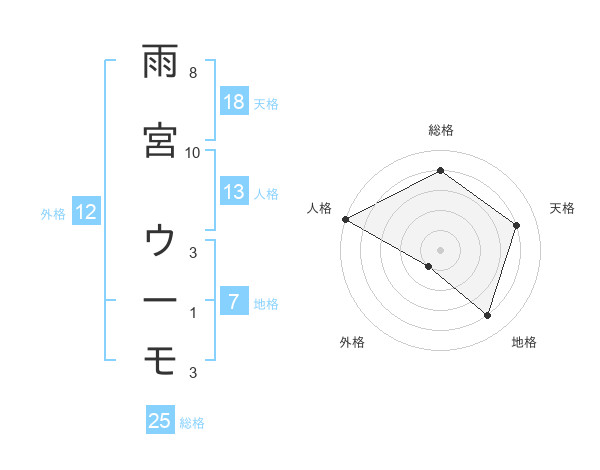 雨宮 ウーモさんを姓名の画数から五運を鑑定