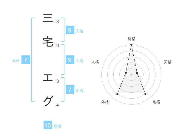 三宅 エグさんの総格は16画の5点!