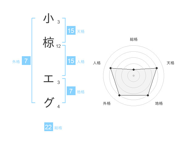 小椋 エグさんの天格は15画の4点!