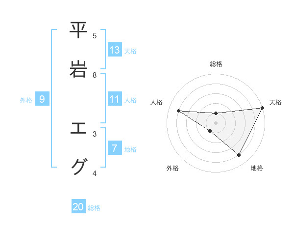 平岩 エグさんの天格は13画の5点!