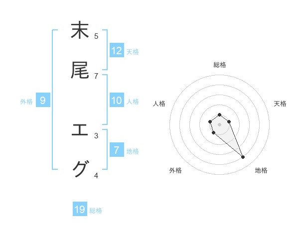 末尾 エグさんの総格は19画の1点!