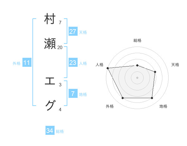 村瀬 エグさんを姓名の画数から五運を鑑定