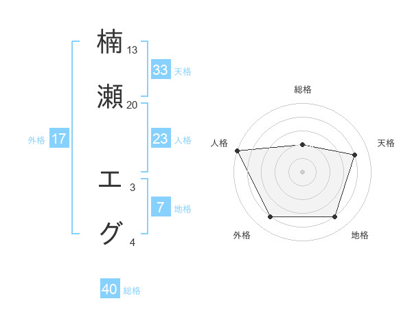 楠瀬 エグさんの天格は33画の4点!