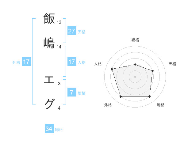 飯嶋 エグさんを姓名の画数から五運を鑑定