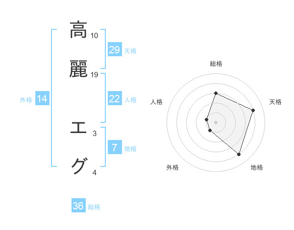 高麗 エグさんの天格は29画の4点!