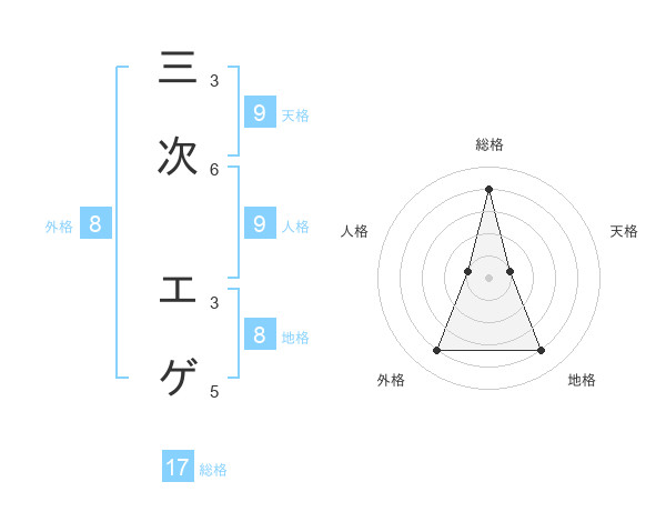 三次 エゲさんの総格は17画の4点!