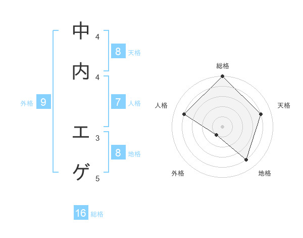 中内 エゲさんの天格は8画の4点!