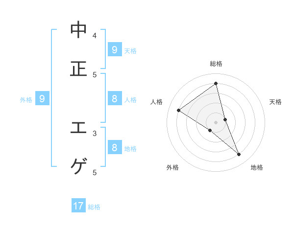 中正 エゲさんの総格は17画の4点!