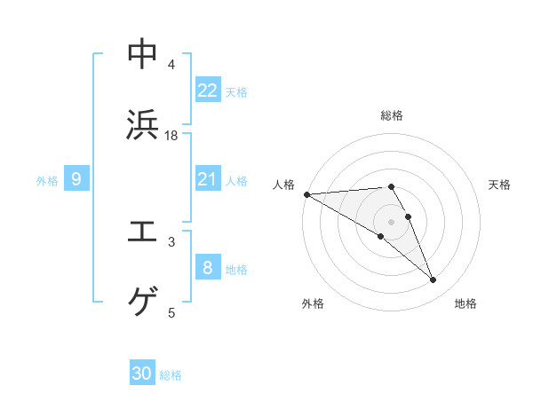 中浜 エゲさんの総格は30画の2点!