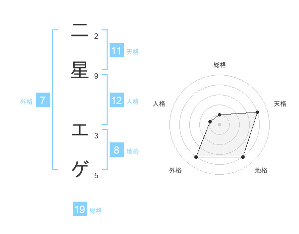 二星 エゲさんの天格は11画の4点!