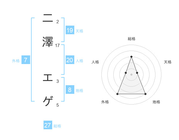 二澤 エゲさんを姓名の画数から五運を鑑定