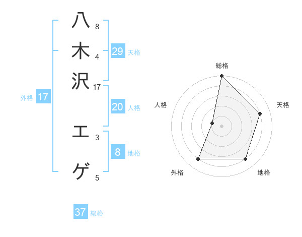 八木沢 エゲさんの地格は8画の4点!