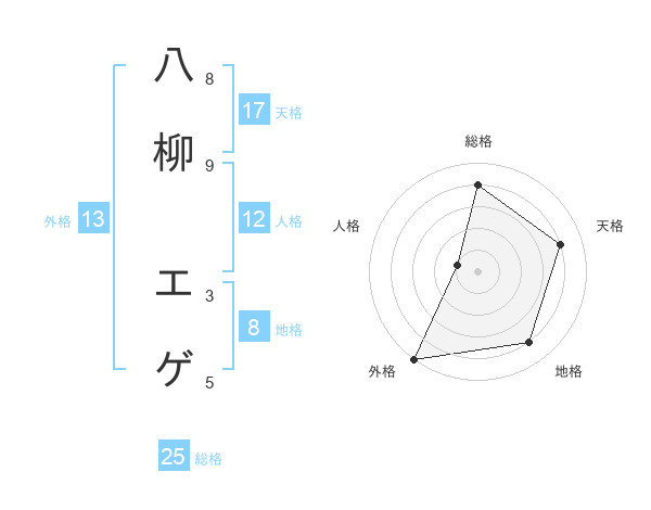 八柳 エゲさんの地格は8画の4点!